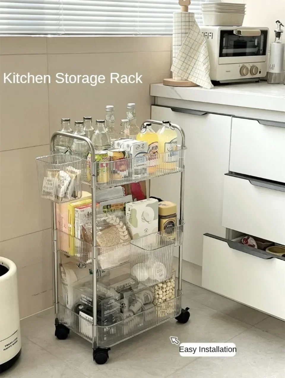 【Stylish Design & Long Lasting Durability】: Stylish design (clear basket bins and stainless steel tubes) is decorative for anywhere and it will bring a good view to you. The storage organizer rolling cart is made of high quality plastic and stainless steel material, which is well-constructed, sturdy and durable to use for many years.