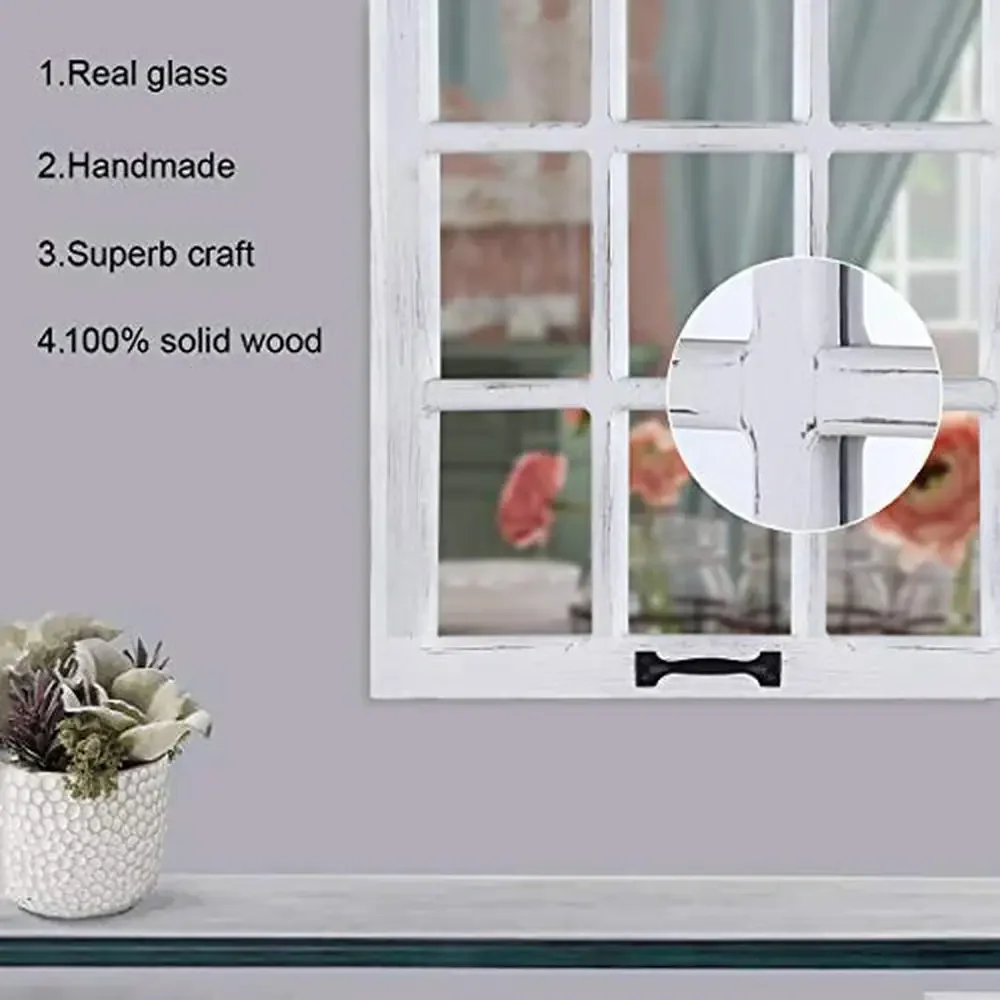 FEATURES: It features a pane of glass that’s divided into 9 sections by genuinely distressed wood. A decorative handle on the bottom completes its authentic appearance.
