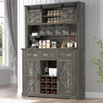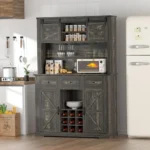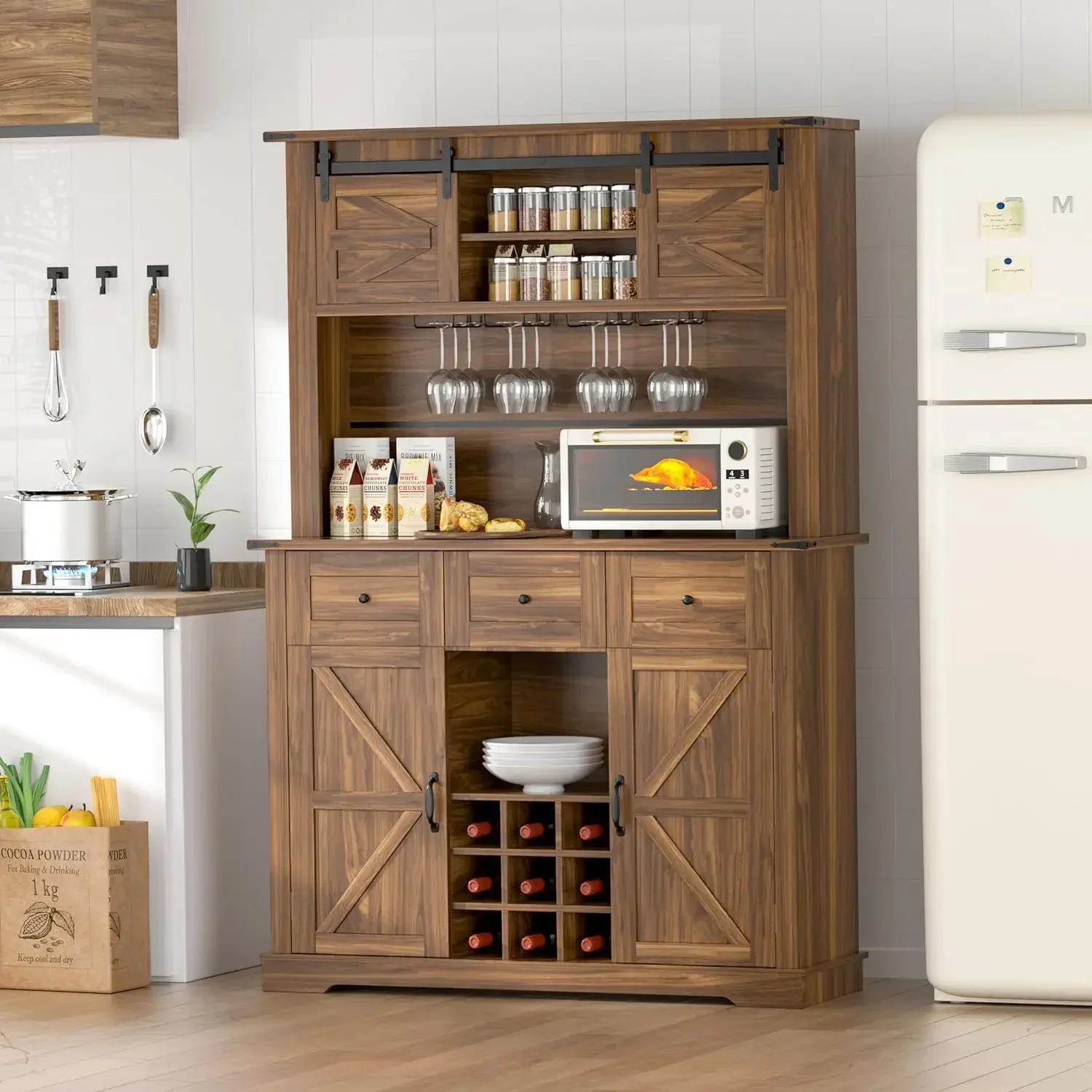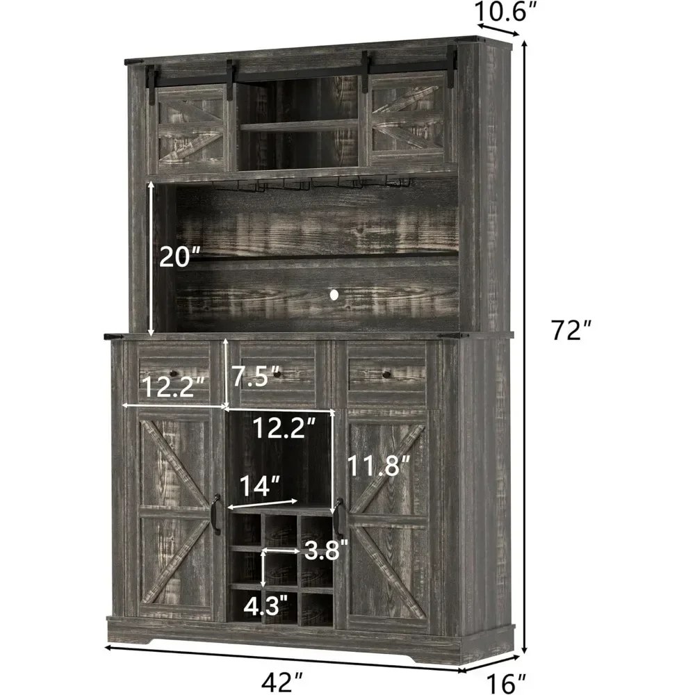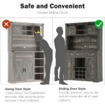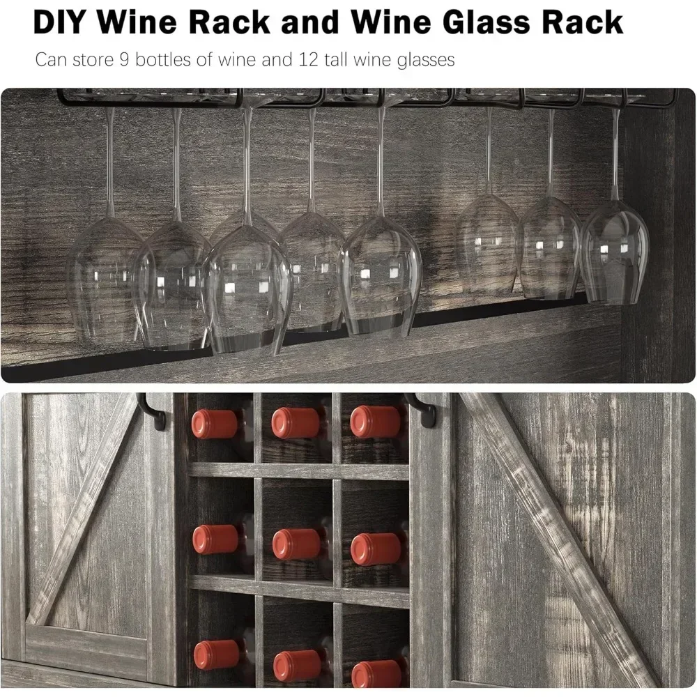 - 【Farmhouse Elegance and Safety Design】We proudly present our stunning farmhouse kitchen cabinet, meticulously crafted from engineered wood to ensure long-lasting durability. Breaking away from tradition, we introduce an elegant sliding door design above the kitchen wine cabinet. This innovative choice helps to avoid potential collisions and enhance the safety.