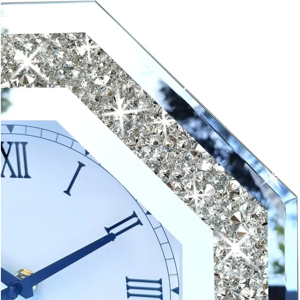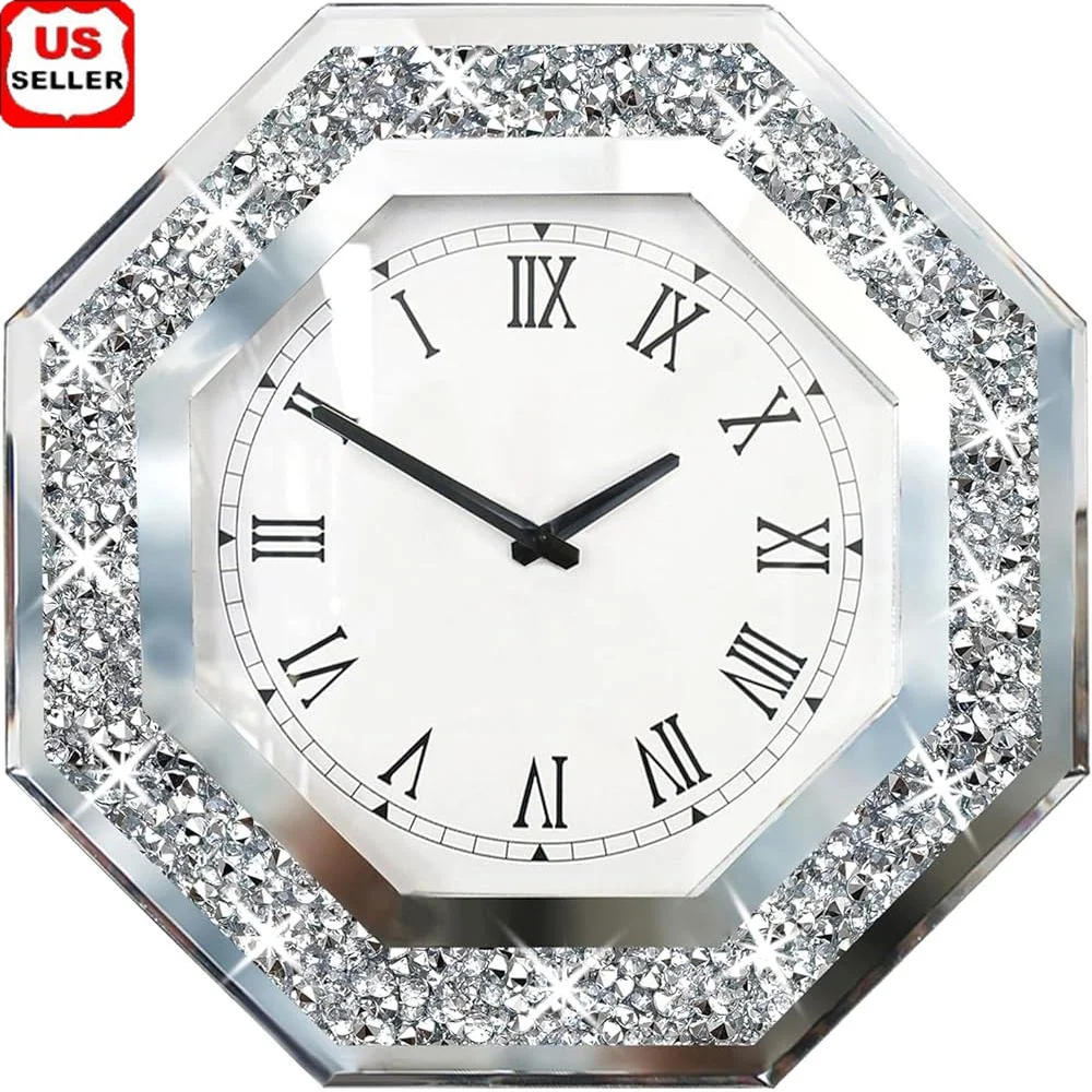 About this item: HAND MADE HOME DESIGN: Mirror home clocks are all handmade. Diamonds are a symbol of luxury and nobility, beautiful bling. WALL DÉCOR: Wall clock is a diamond series; there are currently octagonal shapes. Simple style, it is the perfect decor. EASY TO READ: Clear silver mirror covers the clock dial. Easy to read, silent design, quiet sleep. PACKAGING: The packaging is very safe. set of 1 packed in box, Includes suspension hardware, but does not include batteries.