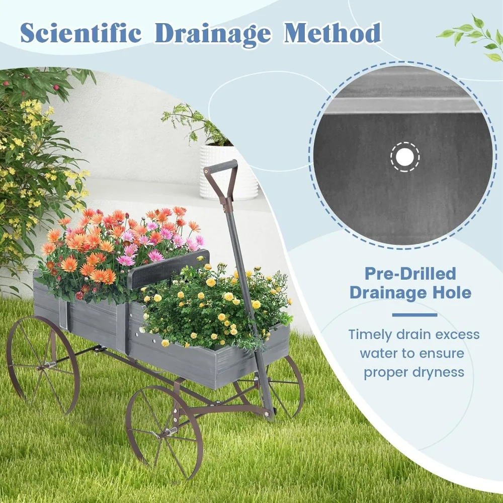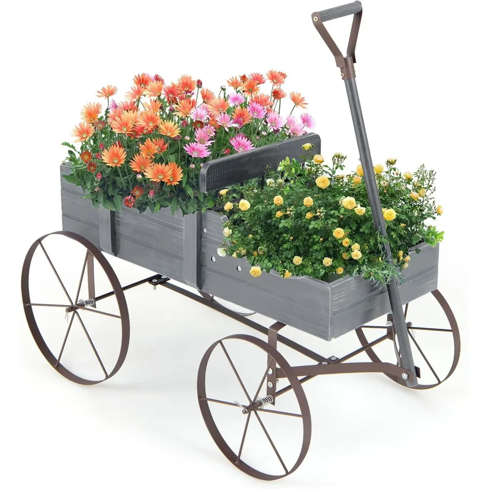 『Small Decorative Wagon Cart』: With its rustic style and antique appearance, the flower planter matches well with different outdoor spaces or gives it to friends who enjoy adding a perfect decoration to their landscaping. Thanks to this flower planter, your lovely plants will breathe freely and grow better in various occasions like garden, backyard, etc. 『Area for Planting or Decorating』: The deep and wide cart bed provides plenty of space to cultivate your favorite flowers or greenery. Moreover, this wagon not only provides a healthy and excellent condition for the growth of plants but also brings more convenience to manage them. 『Solid & Durable Wood Frame』: Constructed of premium fir wood, the wagon garden planter features high strength and good toughness for long service life. Natural and sustainable material is suitable for outdoor use. Equipped with anti-rust and solid screws, the parts of this planter are tightly connected with each other. 『Flexible Wheels & Convenient Handle』: The decorative planter wagon is designed with sturdy metal wheels for great mobility, thus you can move it to anywhere without effort. What’s more, the garden cart features a long handle in the front of the cart for easy and flexible veering. 『Simple Installation & Product Size』: Complete hardware and assembly manual are included. This planter is built in a simple yet stable structure that is easy to put together under the guidance of instruction. The wagon planter measures 24.5″ x 13.5″ x 24″ (L x W x H).