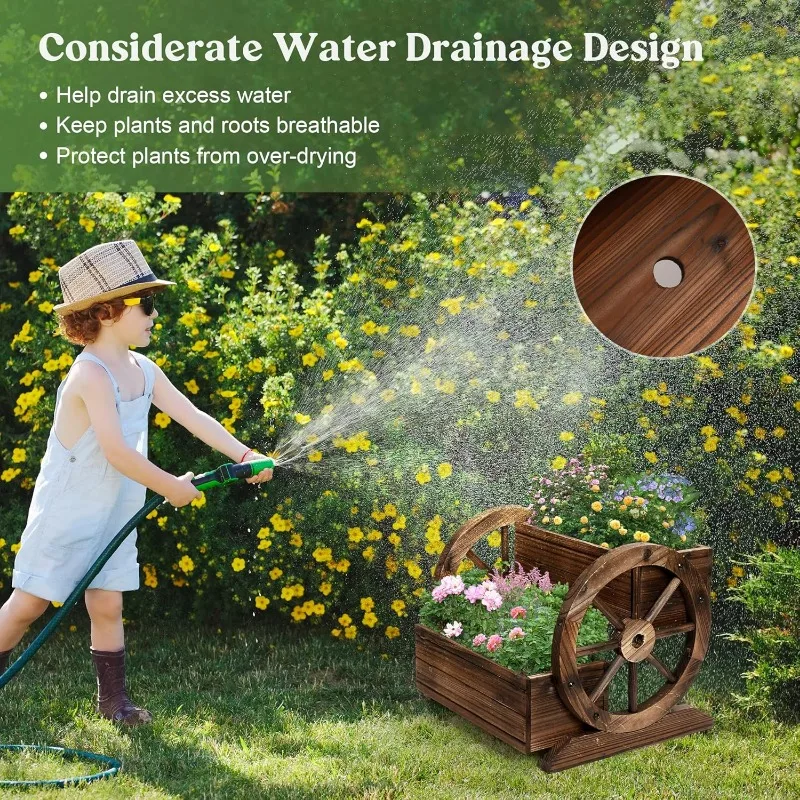 【Product】: Garden Cart Wooden Charcoal box.The product’s width and length can safely accommodate your plants. It provides you with enough space to plant different flowers or plants. It perfectly protects the root of the flower, allowing it to grow healthily.